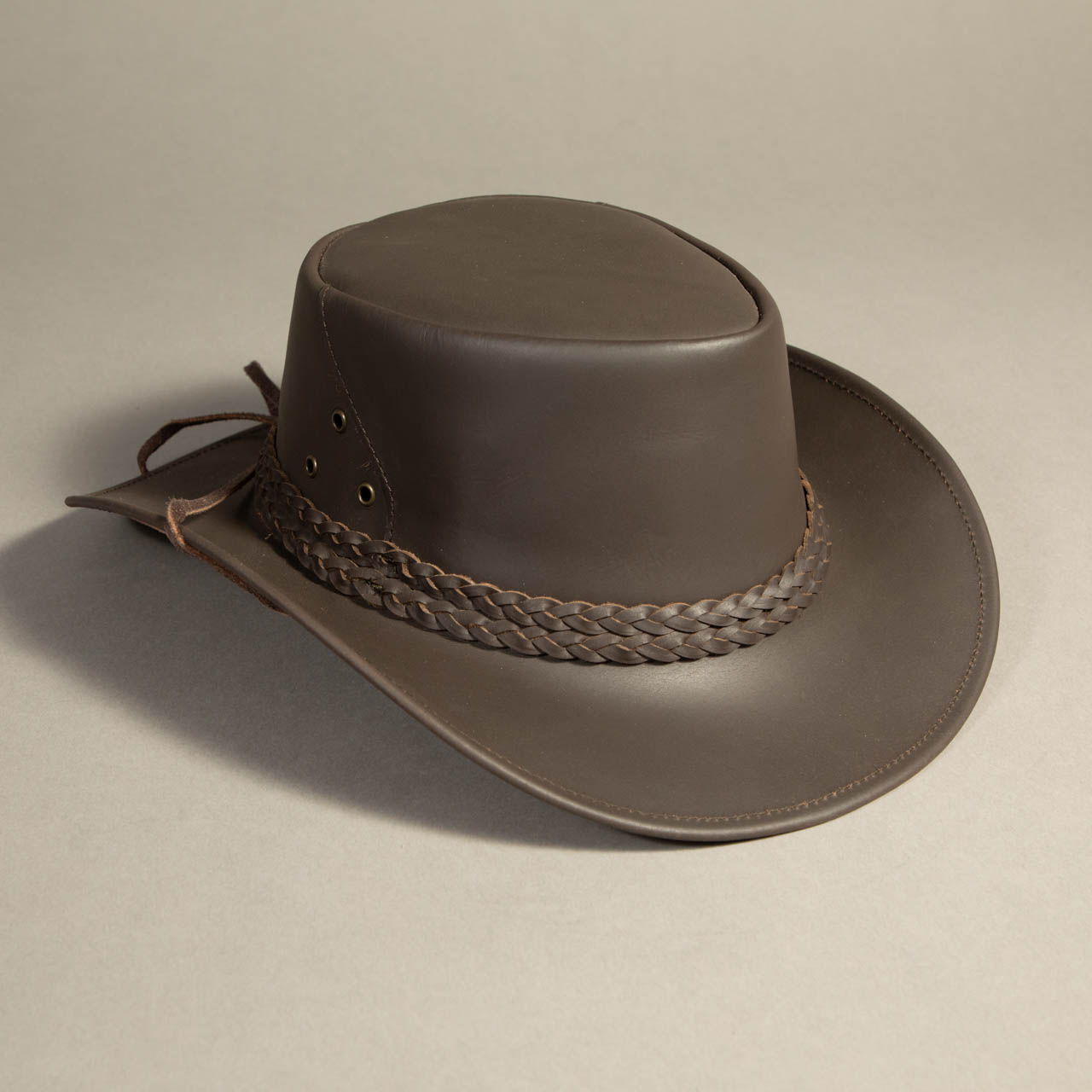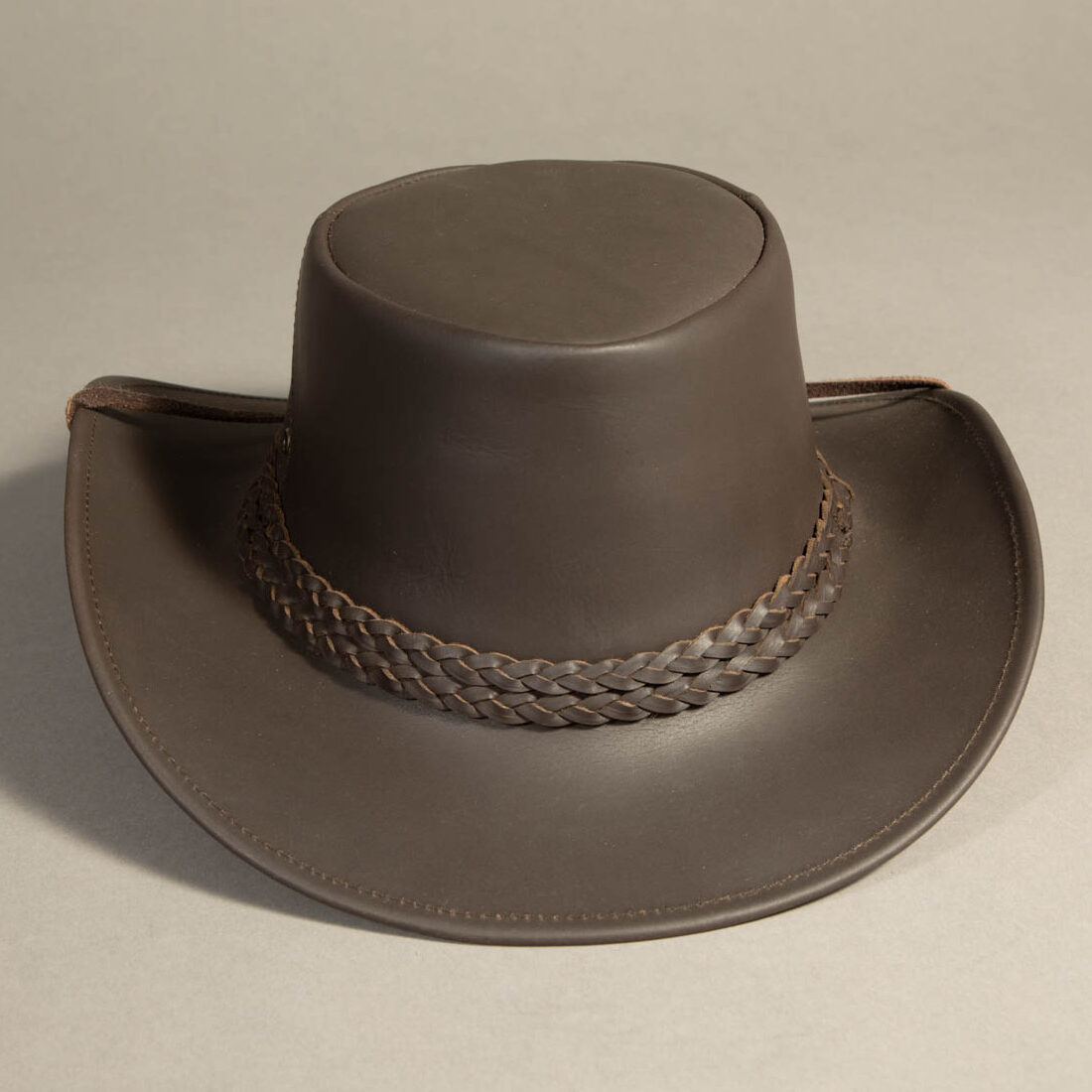 8631 – WESTERN STYLE LEATHER HAT WITH DOUBLE BRAIDED HATBAND BROWN