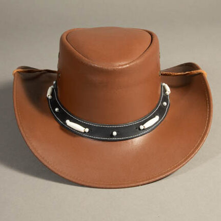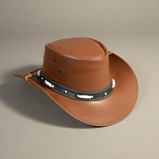 / 8682 – BONE BEADED LEATHER HAT CAMEL